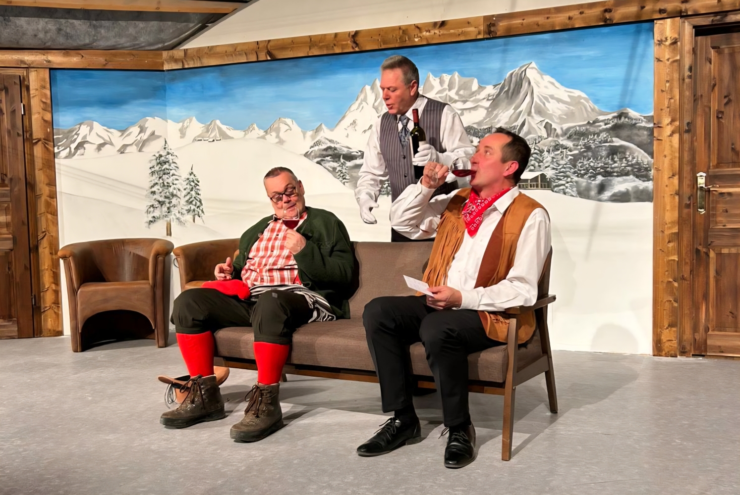 Ja, Sie haben richtig gelesen, in Stetten gibt es nicht nur Spezialidädasaunas und Tennisclubs, ab kommenden Samstag eröffnet im Gräbleswiesenweg eine Skipiste. Leider darf aus Sicherheitsgründen nur ein ausgewählter Personenkreis - nämlich das Ensemble unseres diesjährigen Mundartstücks "Drei Männer im Schnee " - diese außergewöhnliche Piste nutzen, aber wir sind uns sicher, auch für unsere Zuschauer kommt der Spaß nicht zu kurz.